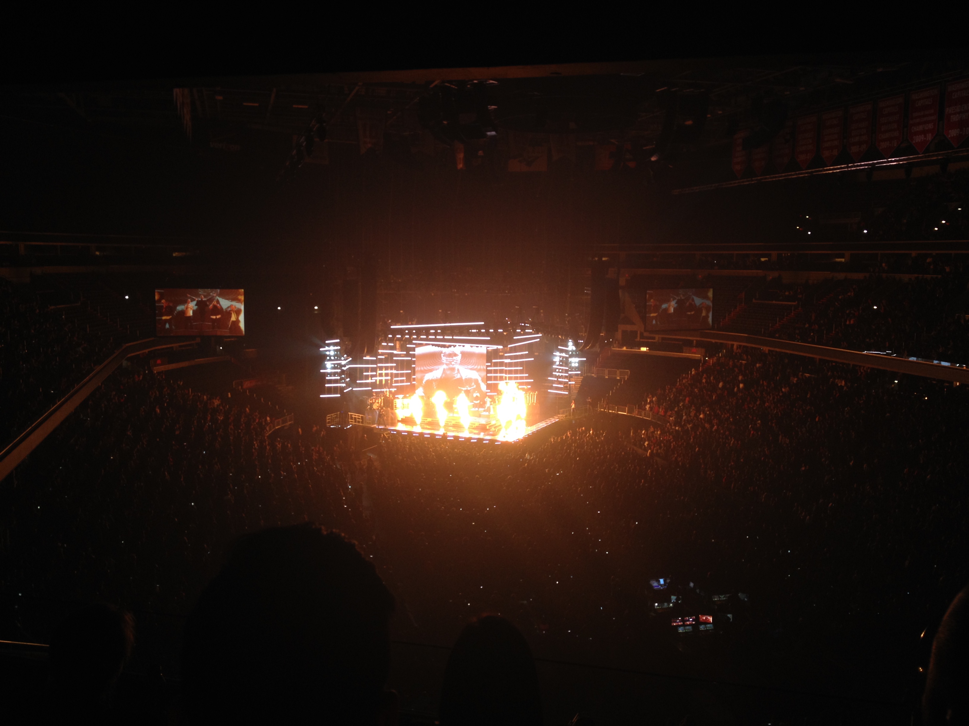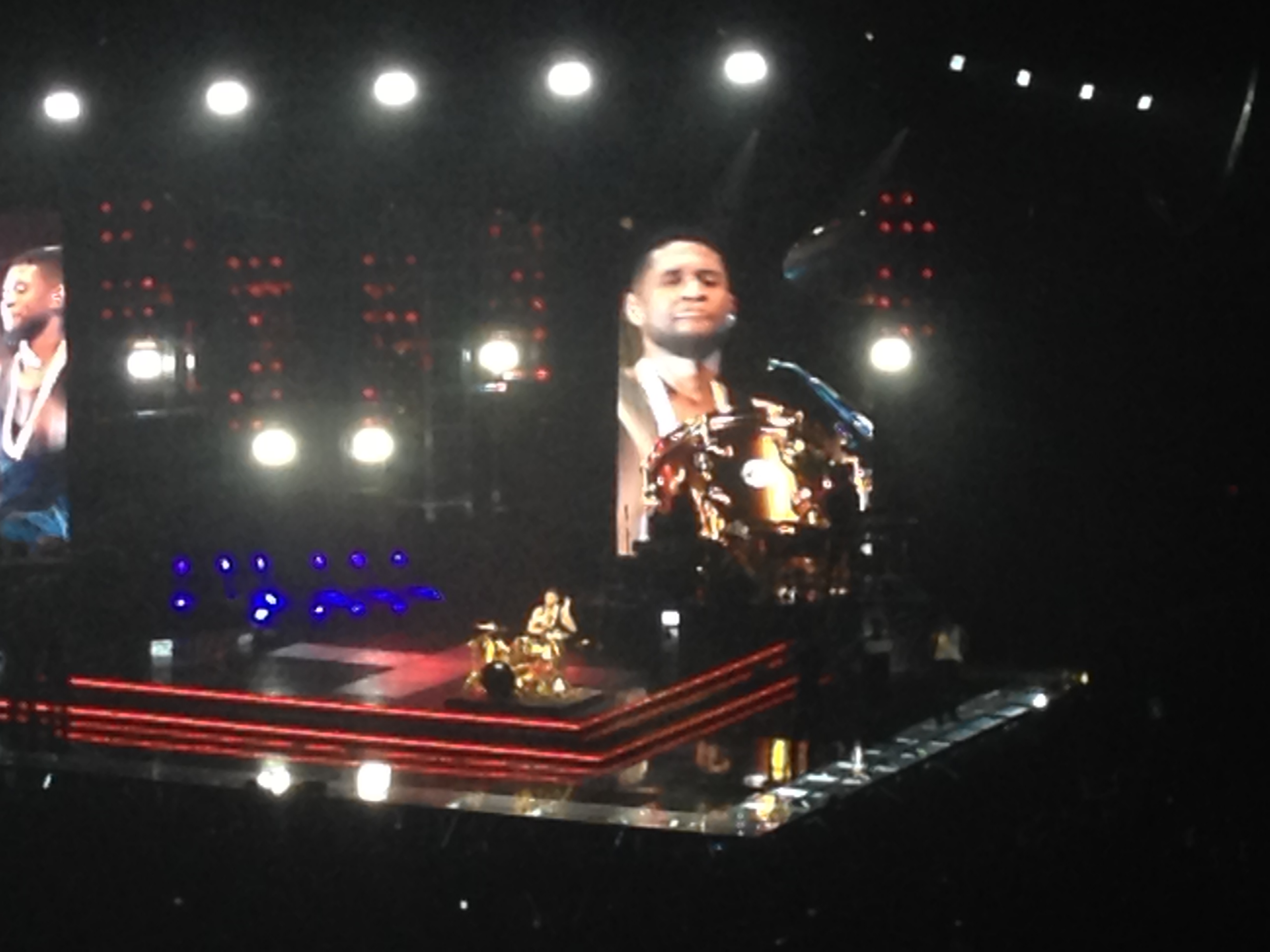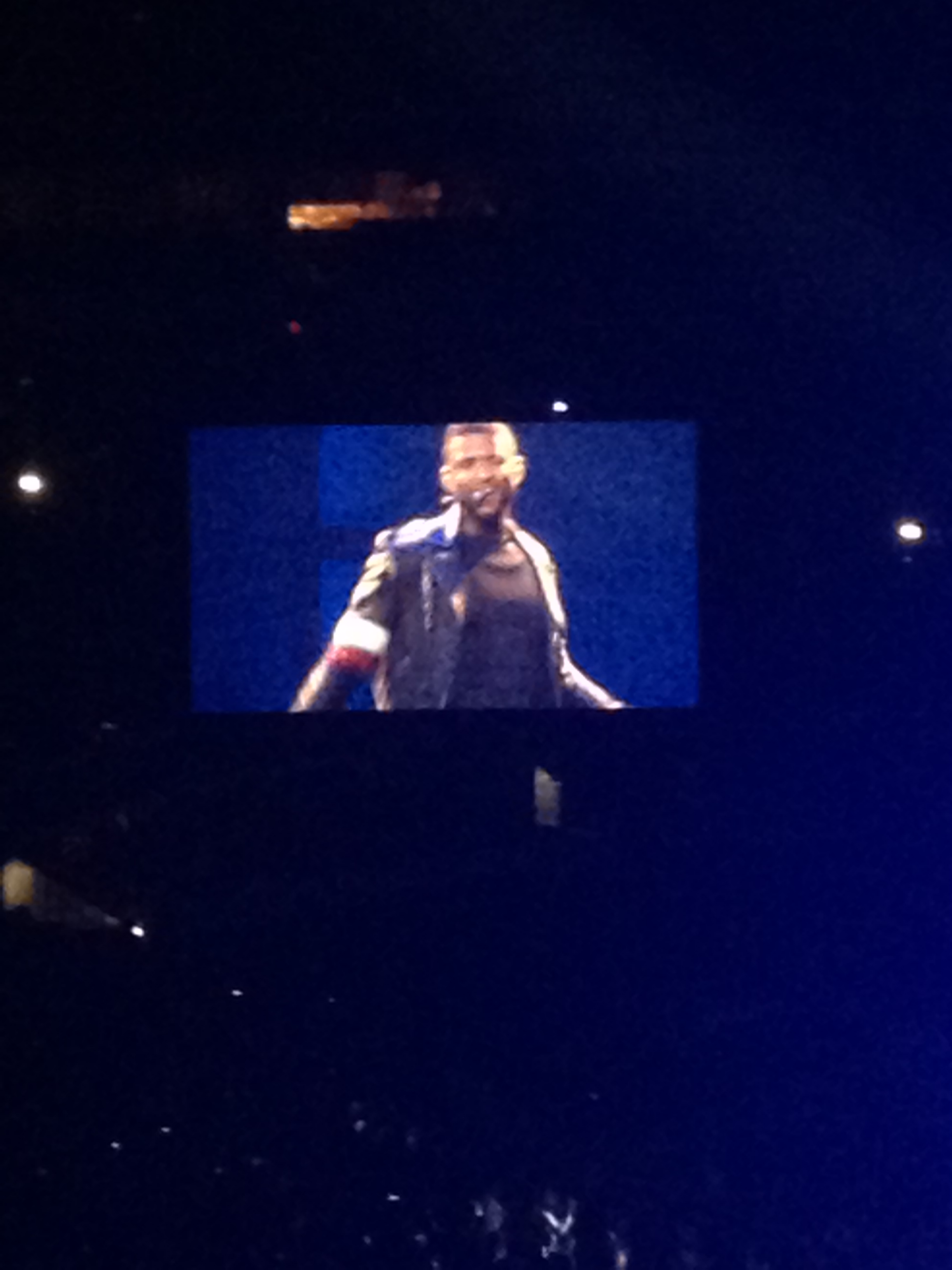 We missed the first couple opening acts, but who cares. We had no idea who they were anyway. Concert started at 7:30, Usher went on at 9:05ish. We got there with perfect timing. I will tell you, I have become SUPER spoiled for the rest of my life when it comes to sporting events & concerts. Many of them, due to my job, mean I get to hang out in a suite with lots of space. (Unless we go to Justin Timberlake in FABULOUS seats, but even then, some obnoxious asshat drunk may throw up on your seats… another story for another day).