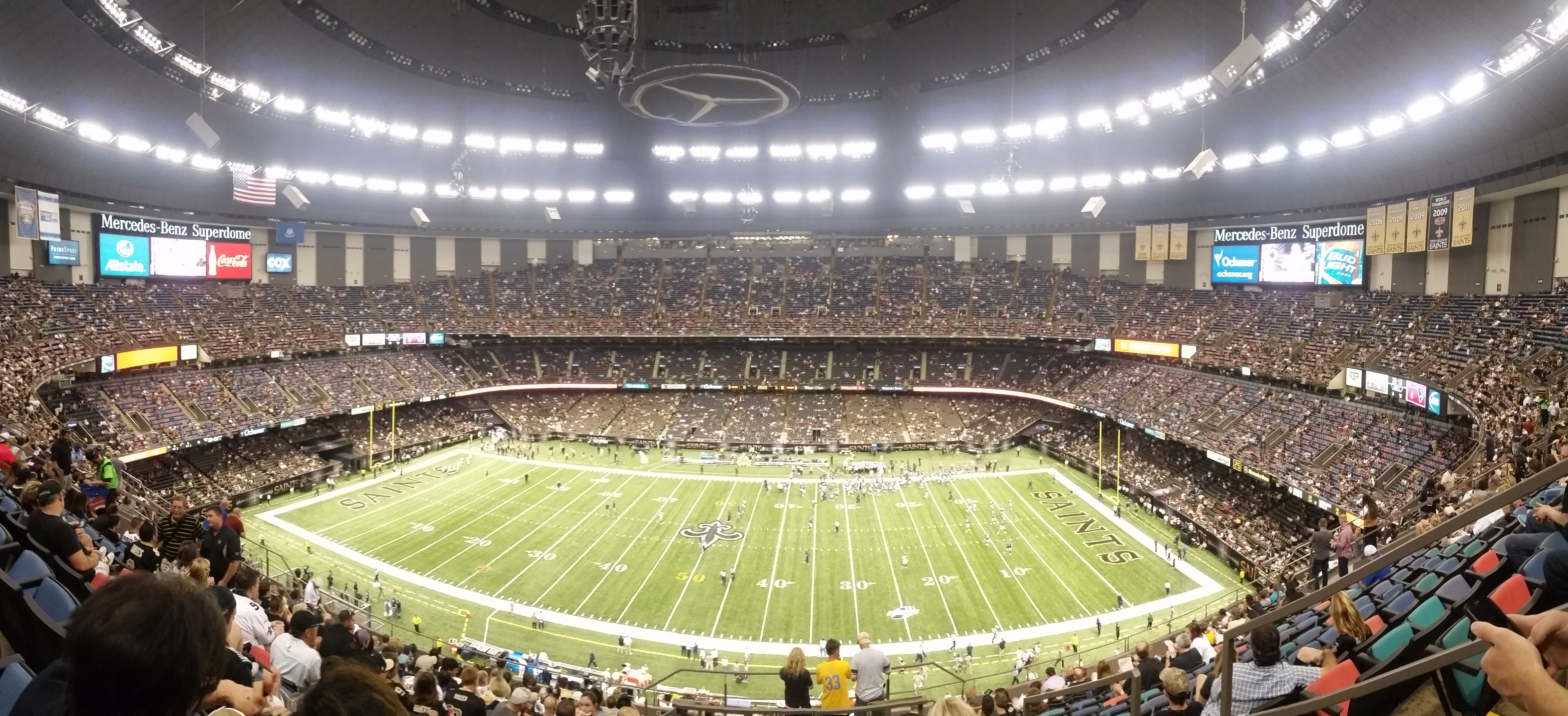 I didn’t have any plans for Sunday… just to sleep in again. Which I did, but was greeted to a message from one of the girls asking if I wanted to go to the Saints preseason game in the Superdome, she had 4 free tickets. DUH, yes! I’m there.